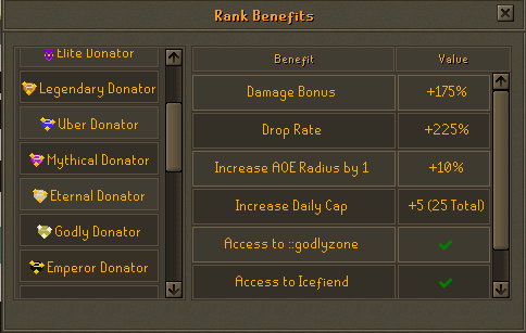 • New Donator zone unlocked with new donator boss ::godlyzone.