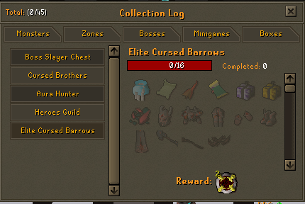 - Mithril Trophy: Complete 35 Achievements, 100K Kc, 20 collection logs, complete elite cursed brothers log