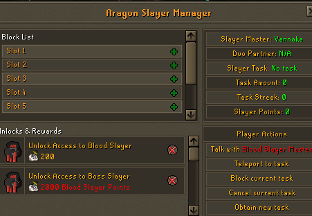 - Requires: Blood Slayer Helm + Slayer Imbue Scroll + 25 Blood slayer attachments + 500m cash+ 1m mobs (35% success).