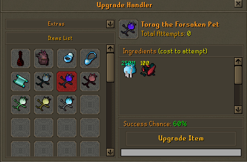 - Upgrade Requirements Essence Dragon, Azure Dragon, Hellish Dragon, Voltstrike Pet, Obelisk Pet, 3 Donation Pets, 1,000 Pet Token, 10 Diamond Taxbags and 50M Mob Tickets