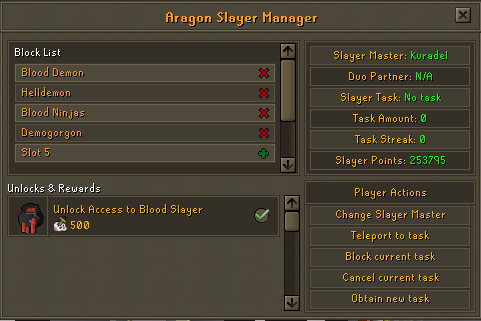 ::altar, ::chestsshould now send the player to the correct location. - Slayer Task Assignment, Reset and Completion auto-reflected in the server tab.