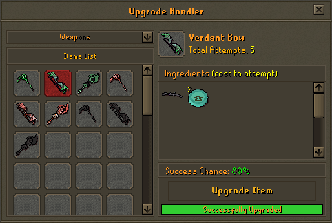 - Hellfire demon: Sacrifice a verdant scythe, verdant bow and verdant staff (One-Time).
